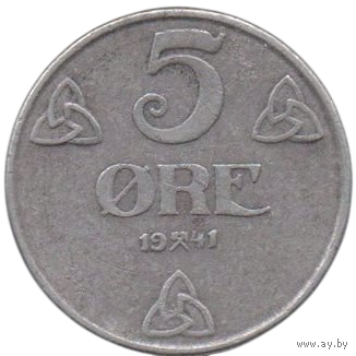 Имперский Комиссариат (Рейхскомиссариат) Норвегия (ІІІ Рейх). 5 эре 1941. Железо. Нечастая.