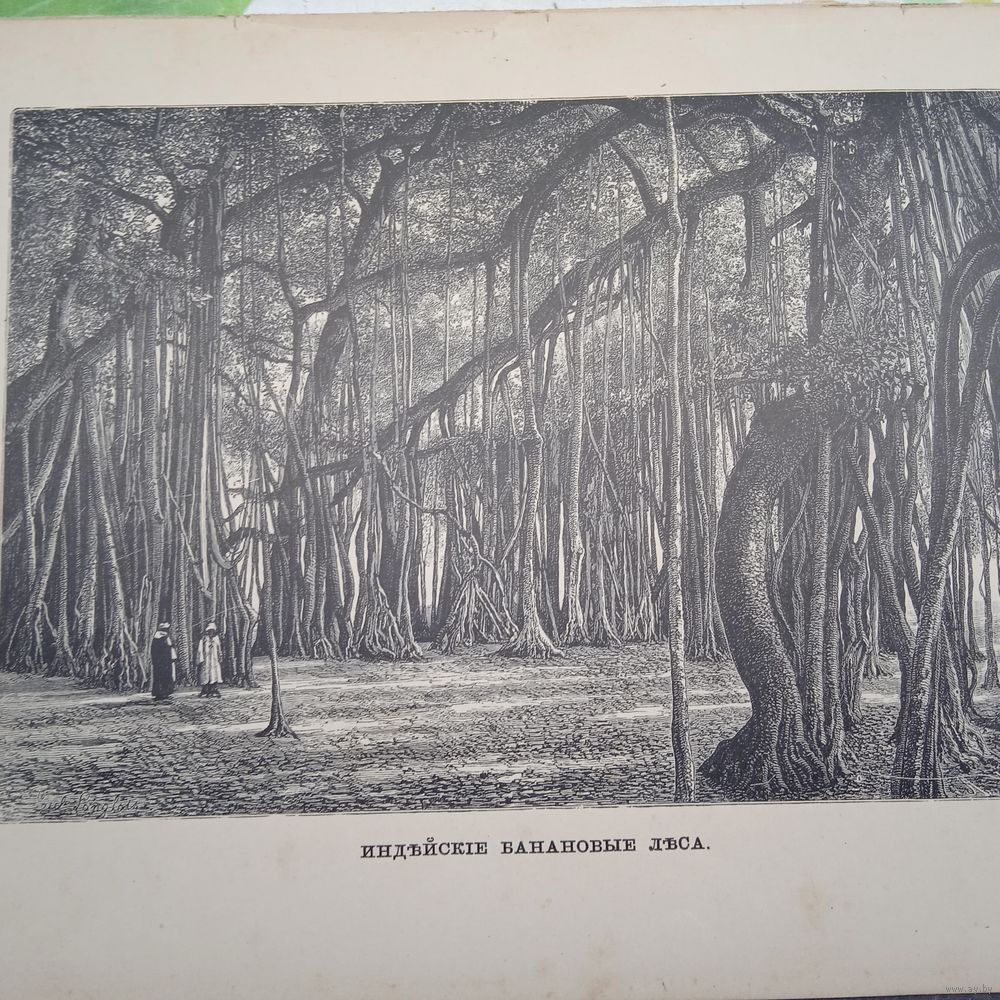 ИНДЕЙСКИЕ БАНАНОВЫЕ ЛЕСА. гравюра конец 19в. 27х17.5см.