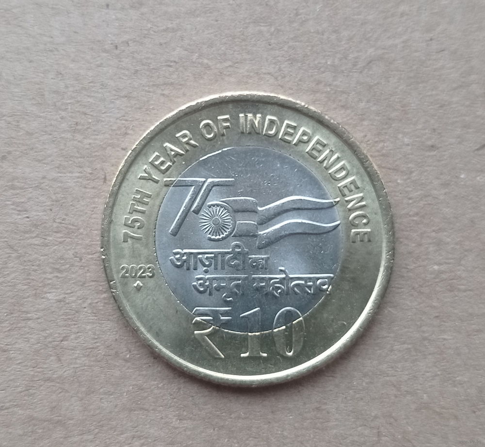 Индия 10 рупий 2023 год 75 лет независимости Индии биметалл