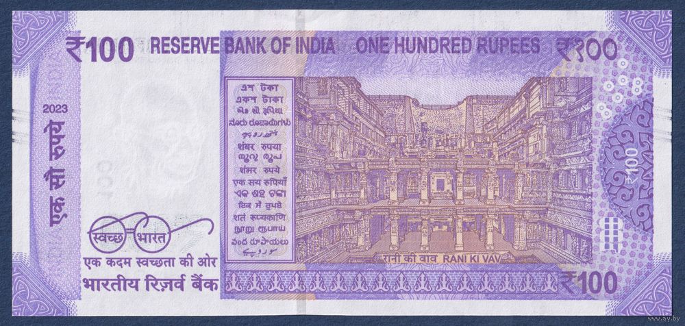 Индия, 100 рупий 2023 г, P-112 (Махатма Ганди, колодец королевы в Патане, литера M), UNC