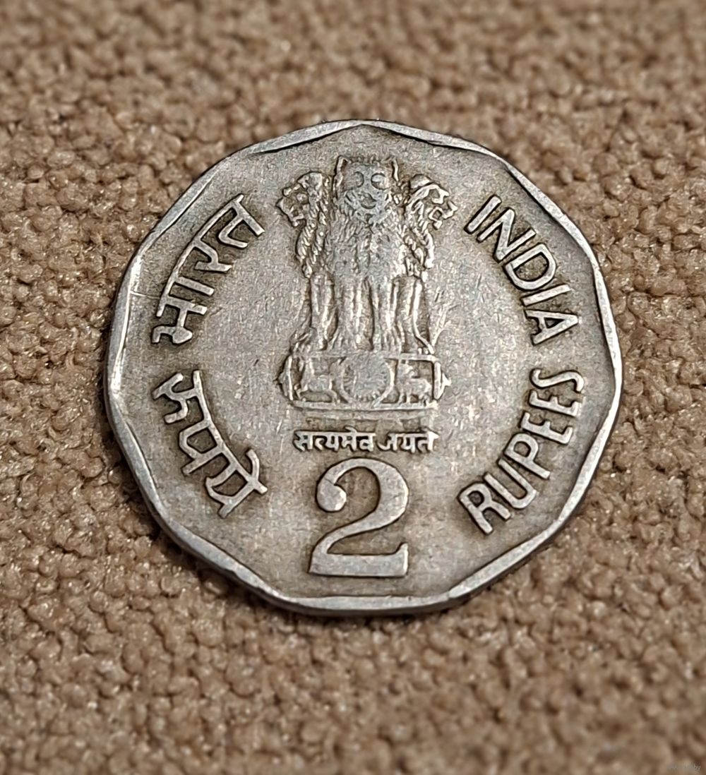 Индия 2 рупии, 1993 Небольшая семья - счастливая семья