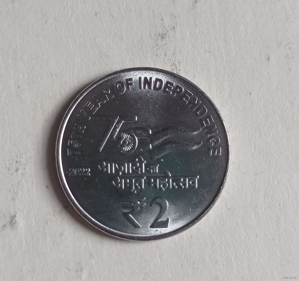 Индия 2 рупии 2022 год 75 лет Независимости Индии