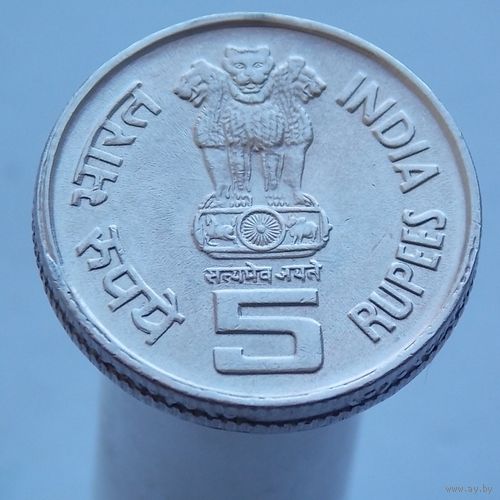 Индия 5 рупий 1994 Международная организация труда /рубчатый гурт с желобом/