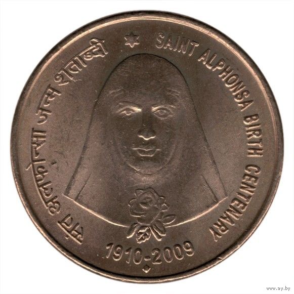 Индия 5 рупий, 2009 100 лет со дня рождения Святой Альфонсы UNC