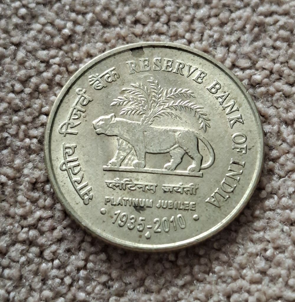 Индия 5 рупий, 2010 75 лет Резервному банку Индии aUNC