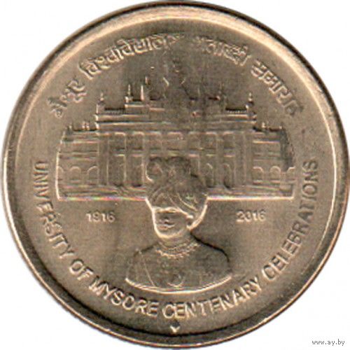 Индия 5 рупий, 2016 100 лет Майсурскому университету UNC