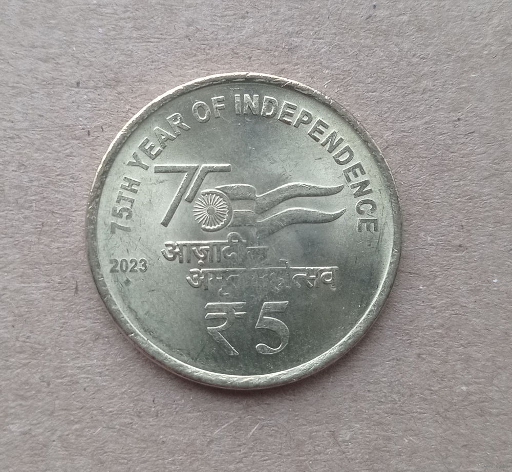 Индия 5 рупий 2023 год 75 лет независимости Индии