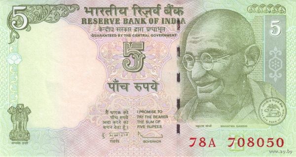 Индия 5 рупий образца 2009 года UNC p94Aa литера E