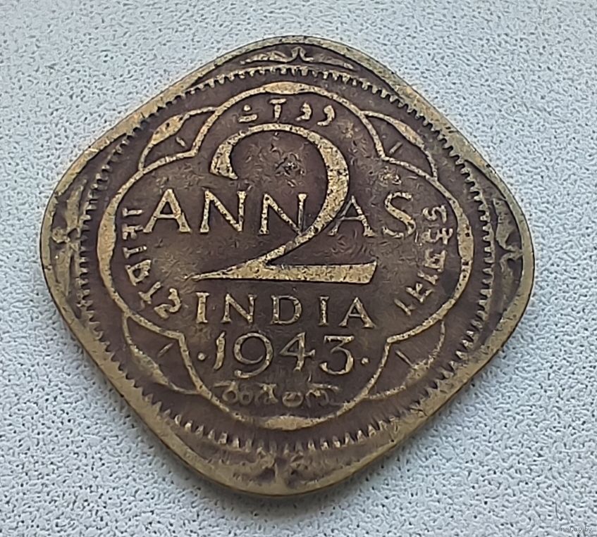 Индия - Британская 2 анны, 1943 Бомбей 6-13-12
