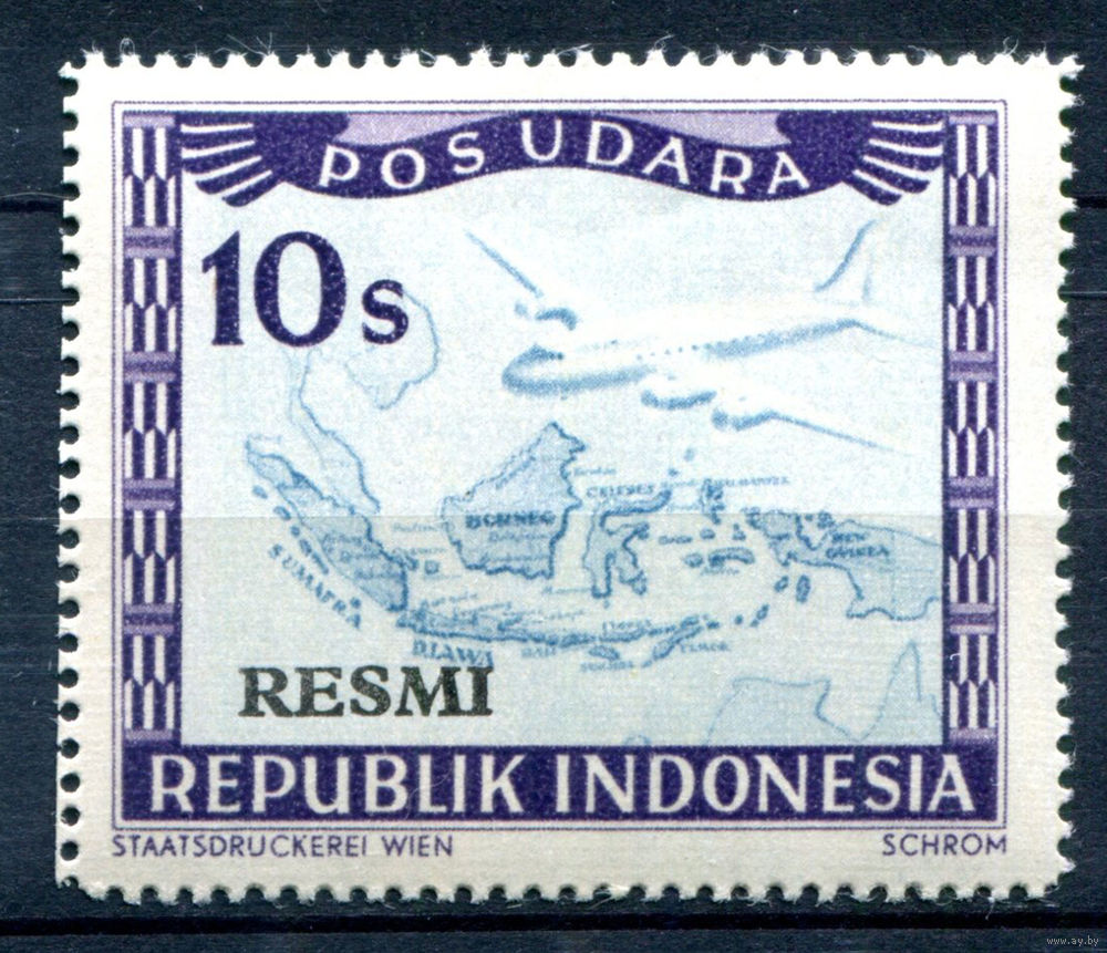 Индонезия - 1949г. - локальные марки, местные мотивы, служебные марки, RESMI, авиация, авиапочта, 10 S - 1 марка - MNH [Mi 24]. #4-W2-105-A-2