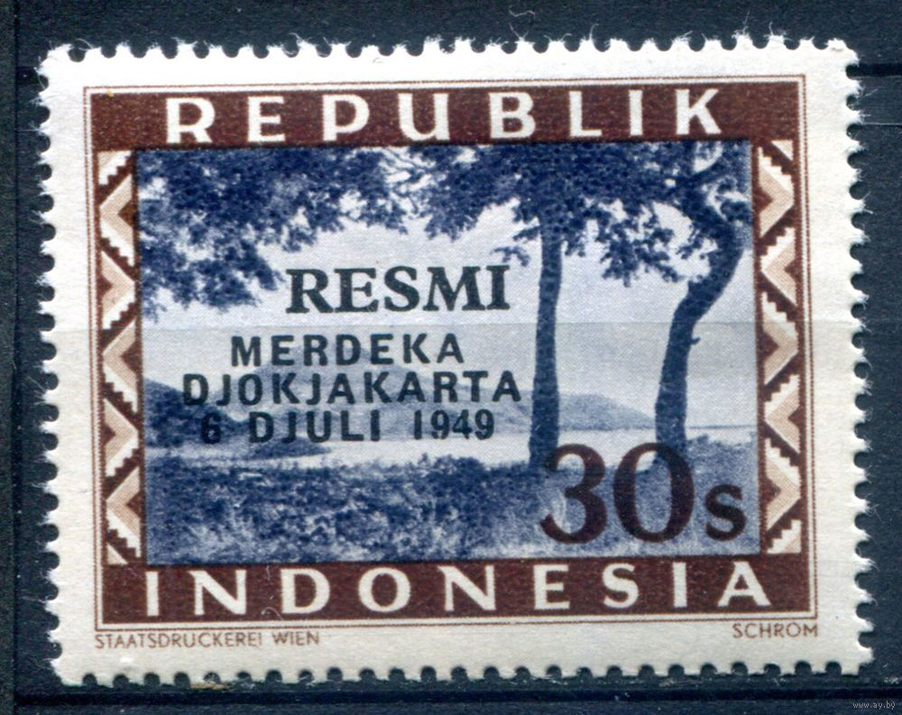 Индонезия - 1949г. - локальные марки, местные мотивы, служебные марки, RESMI, авиация, авиапочта, надп, 30 S - 1 марка - MNH [Mi 35]. #4-W2-105-A-2