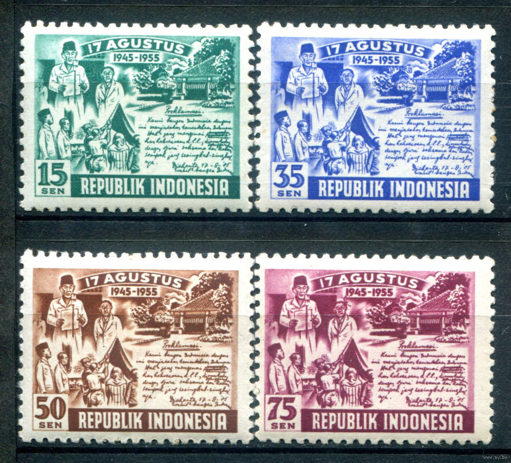 ![Индонезия - 1955г. - 10 лет Республике - 4 марки - полная серия, MNH с пожелтением клея [Mi 143-146]. #4-W2-125-A-2](https://s4-lot.aystatic.by/550x510/906/756/5040/5040756906_0.jpg)