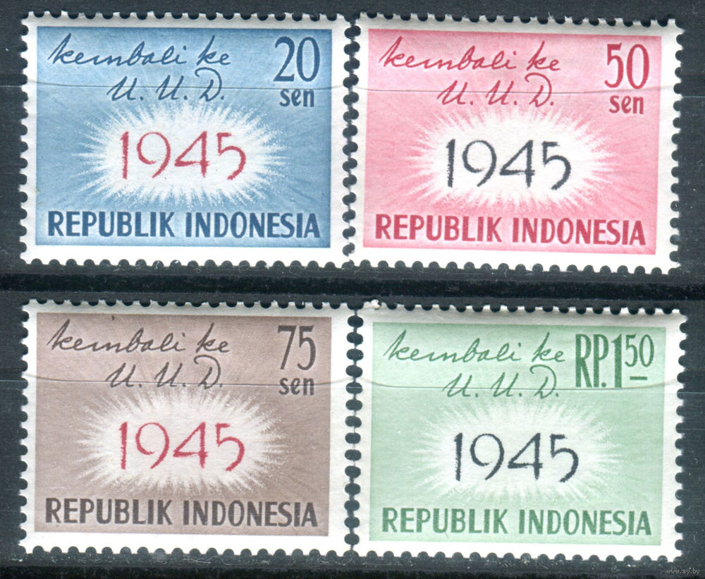 ![Индонезия - 1959г. - повторное принятие Конституции - 4 марки - полная серия, MNH, пожелтение клея [Mi 249-252]. #4-W2-Z-1-9](https://s2-lot.aystatic.by/550x510/552/410/5040/5040410552_1.jpg)