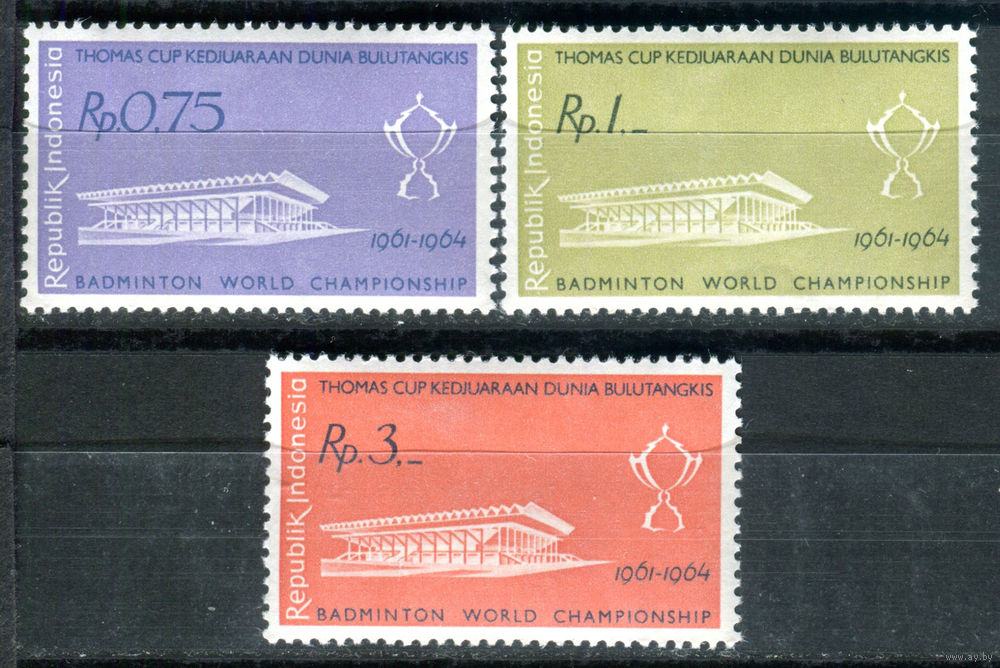 ![Индонезия - 1961г. - международный чемпионат по бадминтону - 3 марки - полная серия, MNH [Mi 301-303]. #4-W1-Z-1-3](https://s3-lot.aystatic.by/550x510/615/493/5040/5040493615_0.jpg)