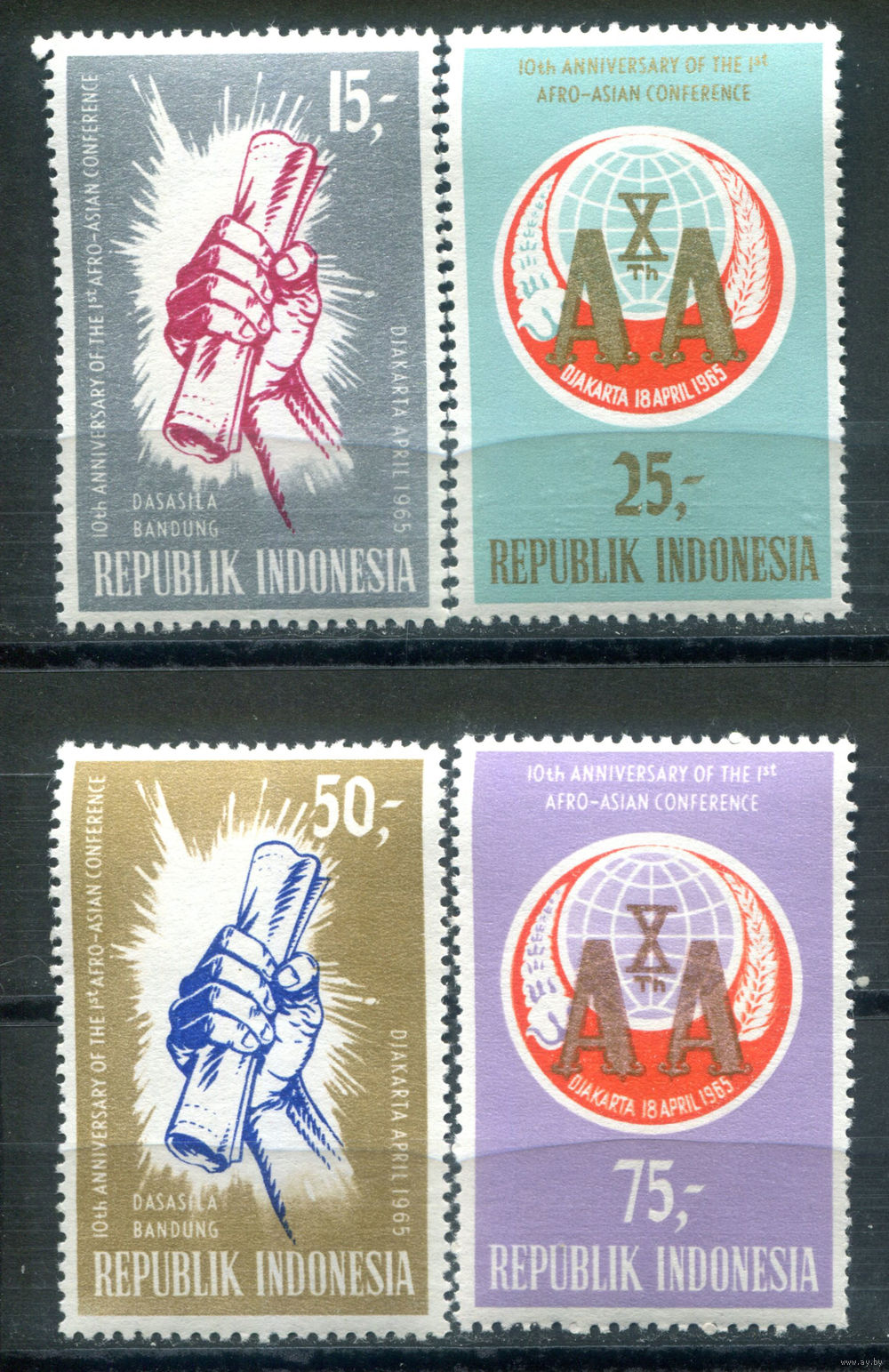 Индонезия - 1965г. - 10-я годовщина первой афро-азиатской конференции - 4 марки - полная серия, MNH, лёгкое пожелтение клея [Mi 469-472]. #4-W1-Z-1-13