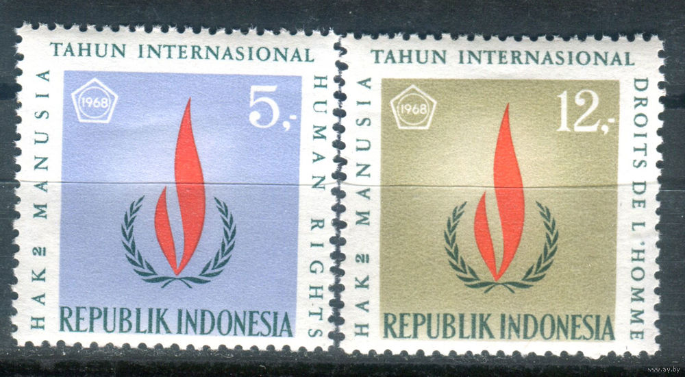![Индонезия - 1968г. - 20 лет декларации прав человека - 2 марки - полная серия, MNH с пожелтением клея [Mi 596-597]. #4-W2-Z-1-14](https://s2-lot.aystatic.by/550x510/162/706/5040/5040706162_0.jpg)