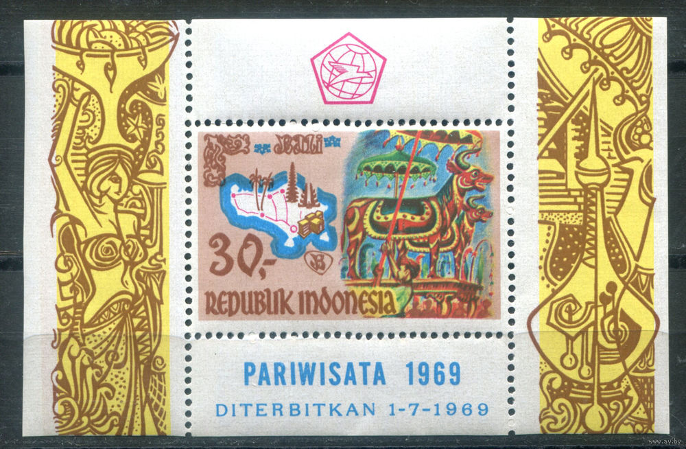 Индонезия - 1969г. - туризм, культура - 1 блок - полная серия, MNH с пожелтением клея [Mi bl. 15]. #4-W1-Z-2-5