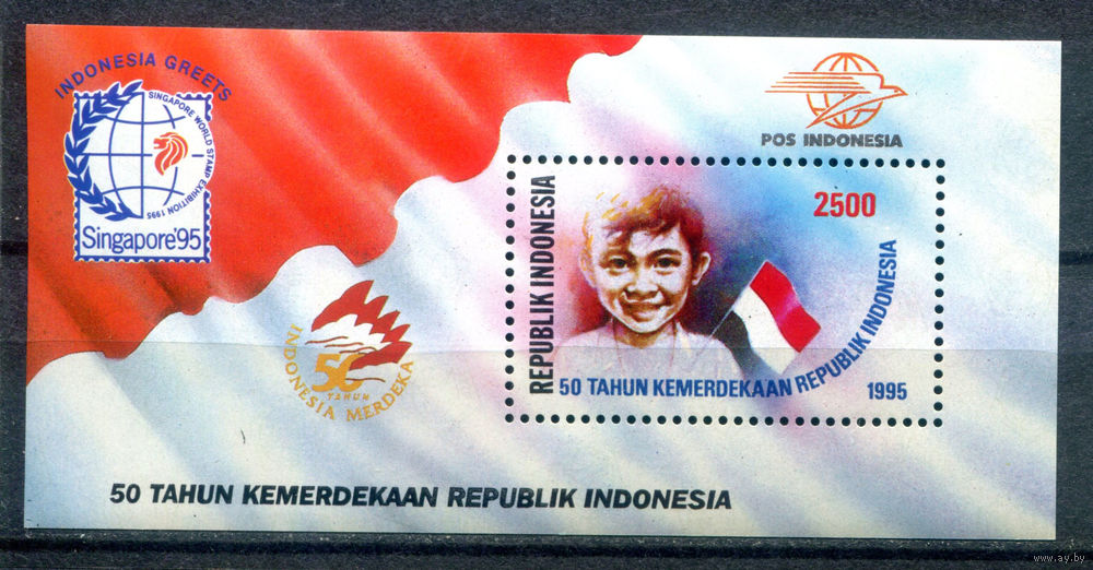 ![Индонезия - 1995г. - 50 лет независимости, филателистическая выставка - 1 блок - полная серия, MNH с незначительным дефектом клея [Mi bl. 100 I]. #4-W1-Z-2-18](https://s2-lot.aystatic.by/550x510/163/706/5040/5040706163_0.jpg)