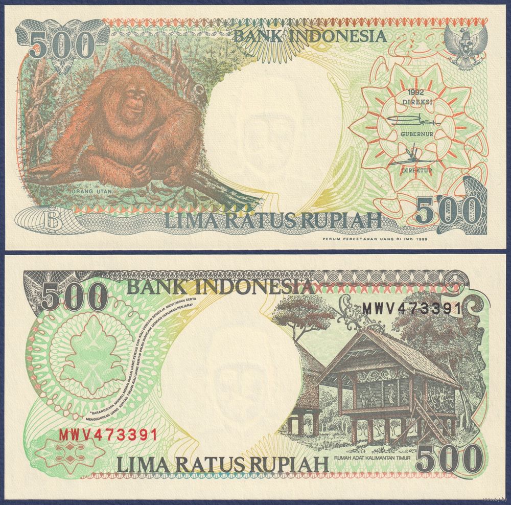 Индонезия, 500 рупий 1992 (1999) г., P-128h (MWV, орангутанг), UNC