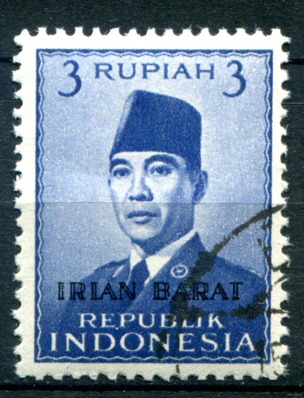 ![Индонезия, Западный Иран - 1963г. - президент Сукарно, 3 R - 1 марка - гашёная с клеем [Mi 13]. #4-W2-105-A-1](https://s1-lot.aystatic.by/550x510/900/307/5040/5040307900_0.jpg)