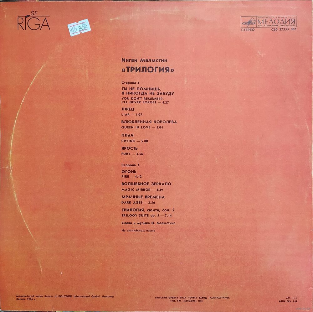 | Исполнитель | Ингви Малмстин "Трилогия" |