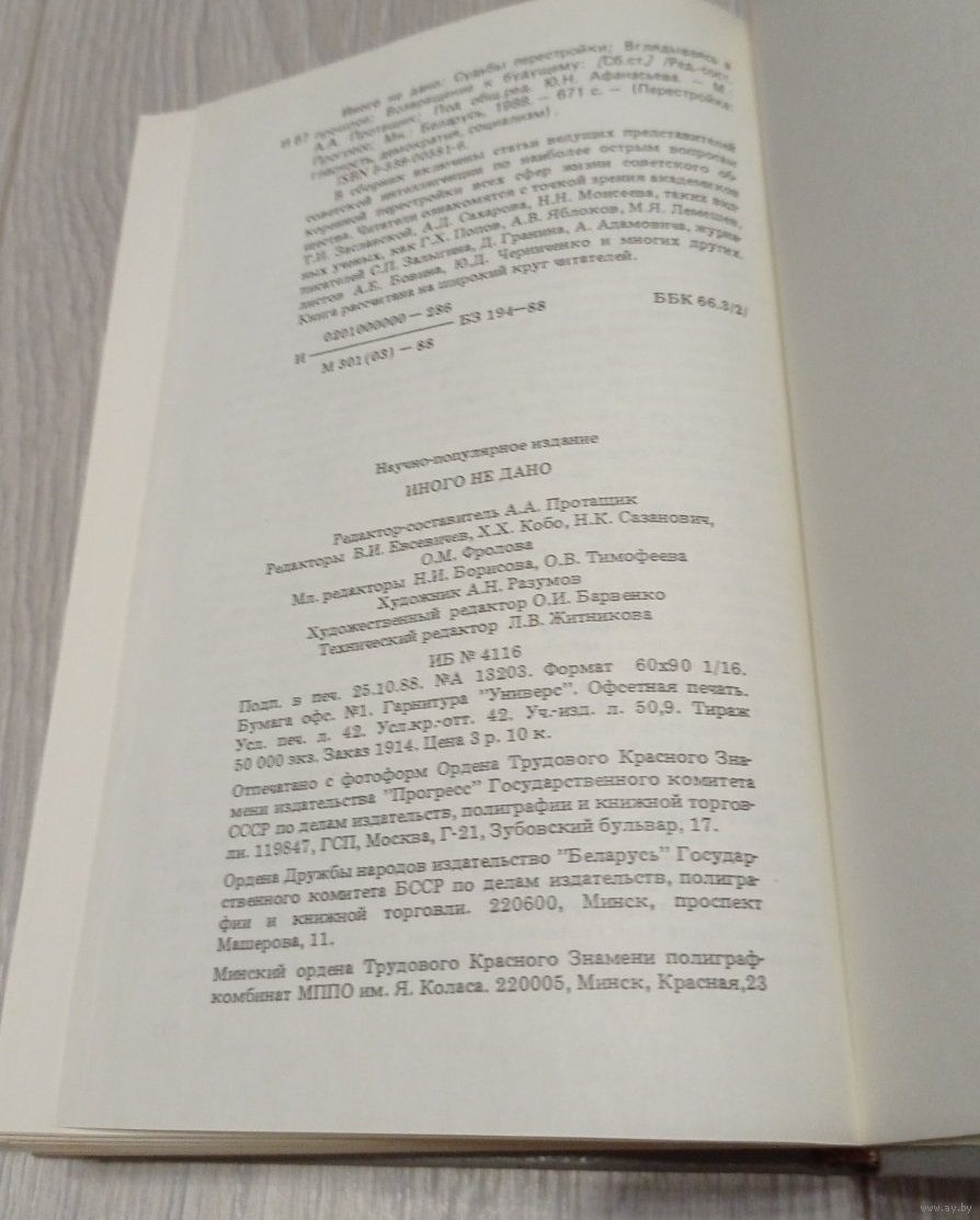 Иного не дано. Перестройка: гласность, демократия, социализм. Судьбы перестройки. Взглядываясь в прошлое. Возвращение к будущему. Передача в Витебске возле ратуши. Пересылка в другой город за счёт покупателя по тарифам Белпочты либо Европочты после 100% предоплаты.