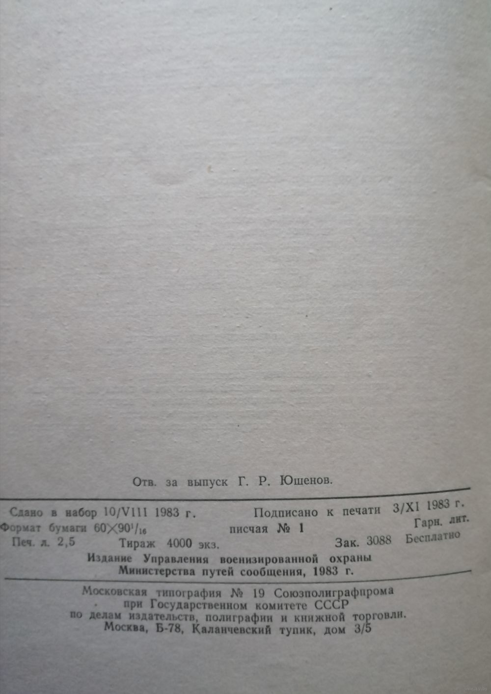 Ведомственная охрана на службе МПС (Очерки истории и современности). К 80-летию ведомственной охраны МПС. Е.П.Чеботарев.2001, тираж 1000 экз. Цена: 40 руб.