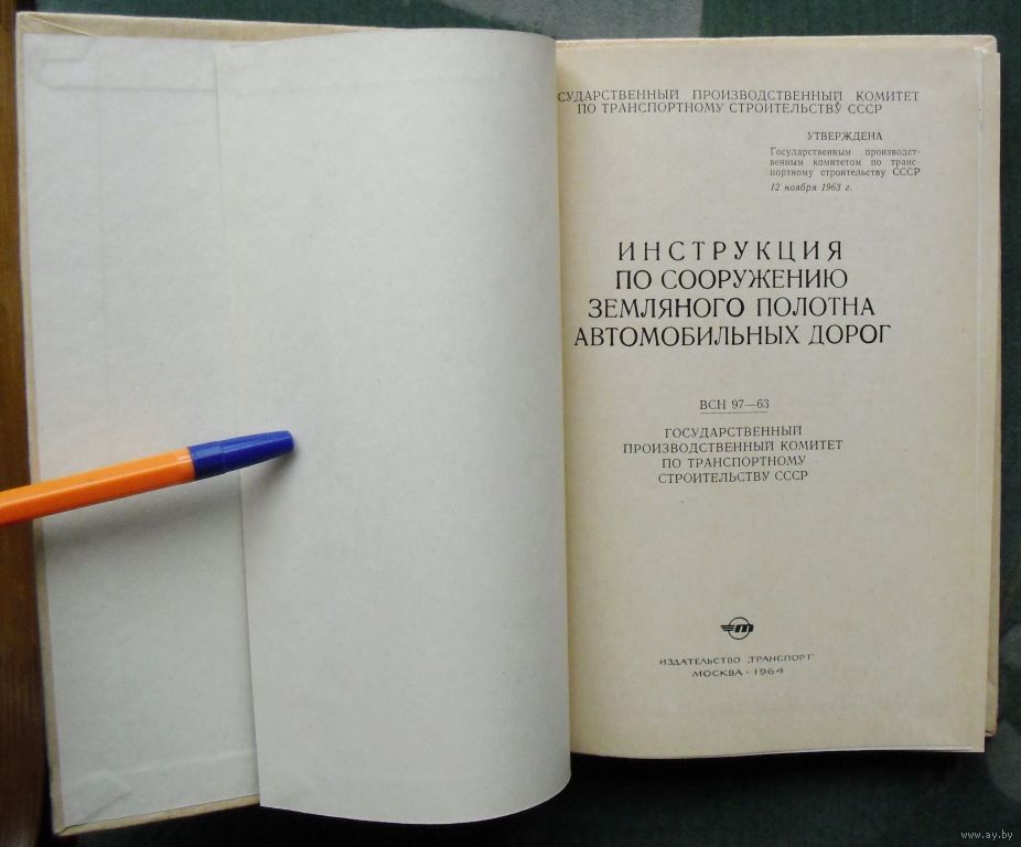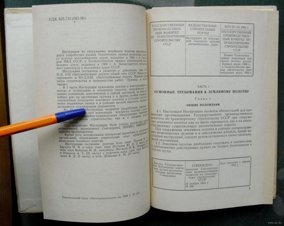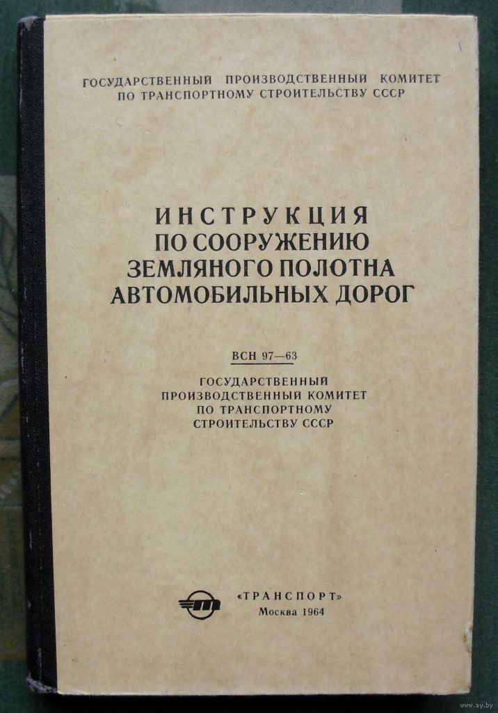 Инструкция по сооружению земляного полотна автомобильных дорог. ВСН 97-63 Государственный производственный комитет по транспортному строительству СССР.