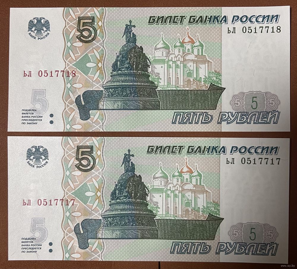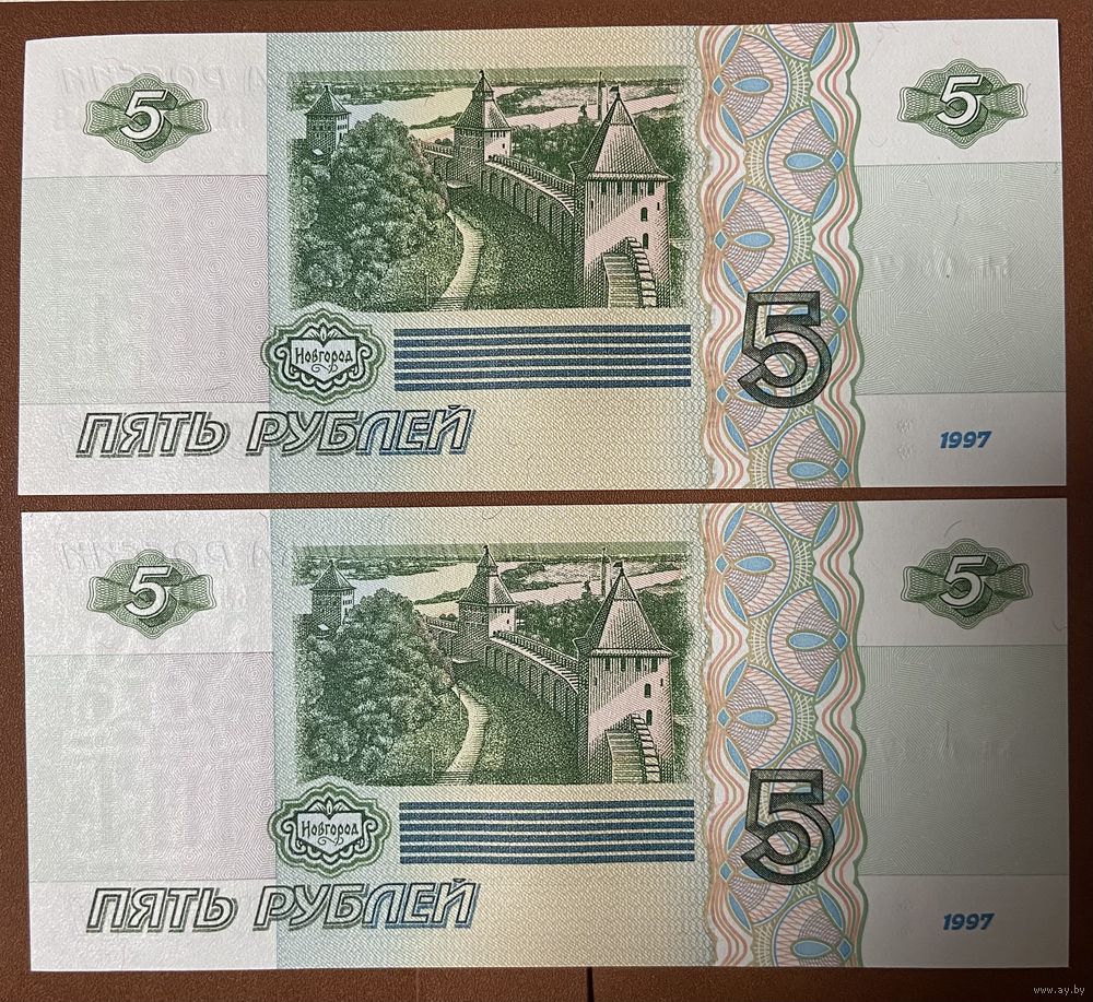 Интересный лот 2 купюры с номерами подряд 5 рублей 1997 год С рубля без МЦ НЕ БЫЛИ В ОБОРОТЕ