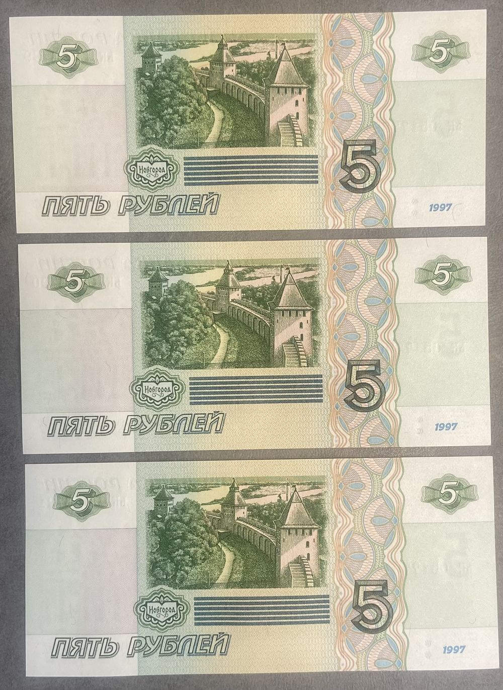 Интересный лот 3 купюры с номерами подряд 5 рублей 1997 год С рубля без МЦ НЕ БЫЛИ В ОБОРОТЕ
