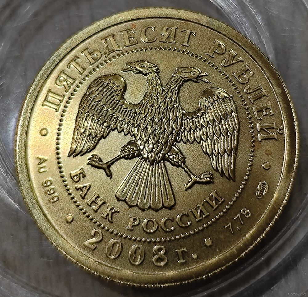 Инвест монета. 50 рублей. 2008 года. Георгий победоносец. UNC. Дешевле мешков