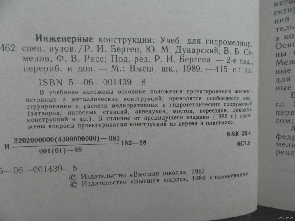 Изложены основные вопросы проектирования железобетонных и металлических конструкций. Приводятся особенности конструирования и расчета мелиоративных и гидротехнических сооружений. Издание дополнено вопросами проектирования конструкций из дерева и пластмасс.