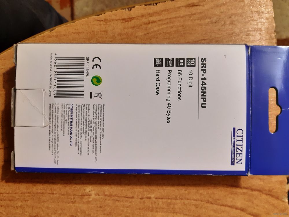 Продаю инженерный калькулятор Citizen SRP 145 NPU. Б/у, в хорошем состоянии. Предназначен для проведения как простых, так и сложных вычислений. Батарейка была заменена на новую. Полный комплект: калькулятор, защитная крышка, коробка, паспорт, инструкция. Идеально подойдет студентам, строителям, инженерно-техническим работникам. Могу выслать почтой в пределах Республики Беларусь.