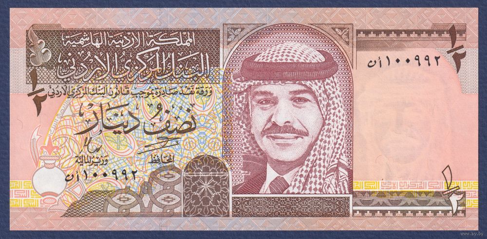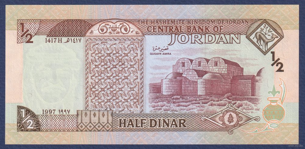 Иордания 0.5 динара 1997 г., P-28b (Король Хусейн II, Крепость Кусайр-Амра), UNC