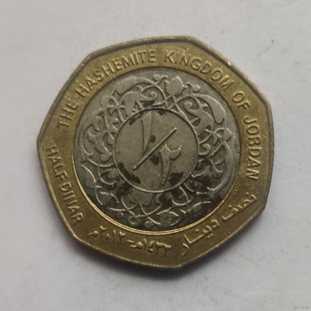 Номер KM # 79 Страна Иордания Период Иорданское Хашимитское Королевство (1992 - 2021) Правитель Абдалла II Валюта Иорданский динар Вид чекана Регулярный чекан Номинал ½ динара Год 2000 - 2020 Гурт Гладкий Форма 7-угольник Отношение авс/рев Медальное (0°) Материал Би-металл : центр - медно-никелевый сплав, кольцо - латунь Вес (g) 9,67 Диаметр (mm) 29 Толщина (mm) 2