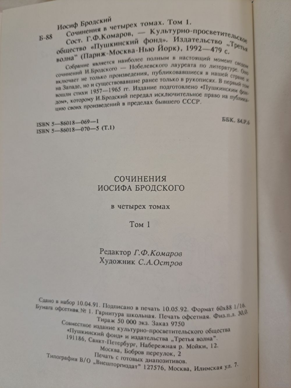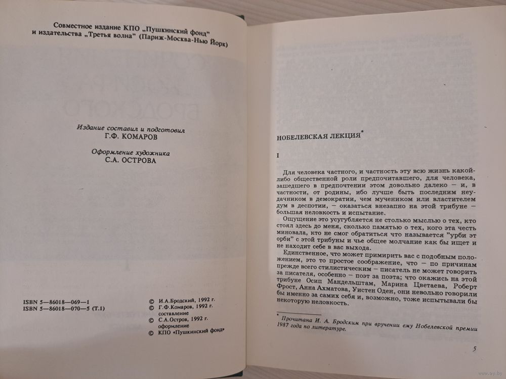 Иосиф Бродский сочинения в четырёх томах 4-х томах. 1992 г. Пушкинский фонд.