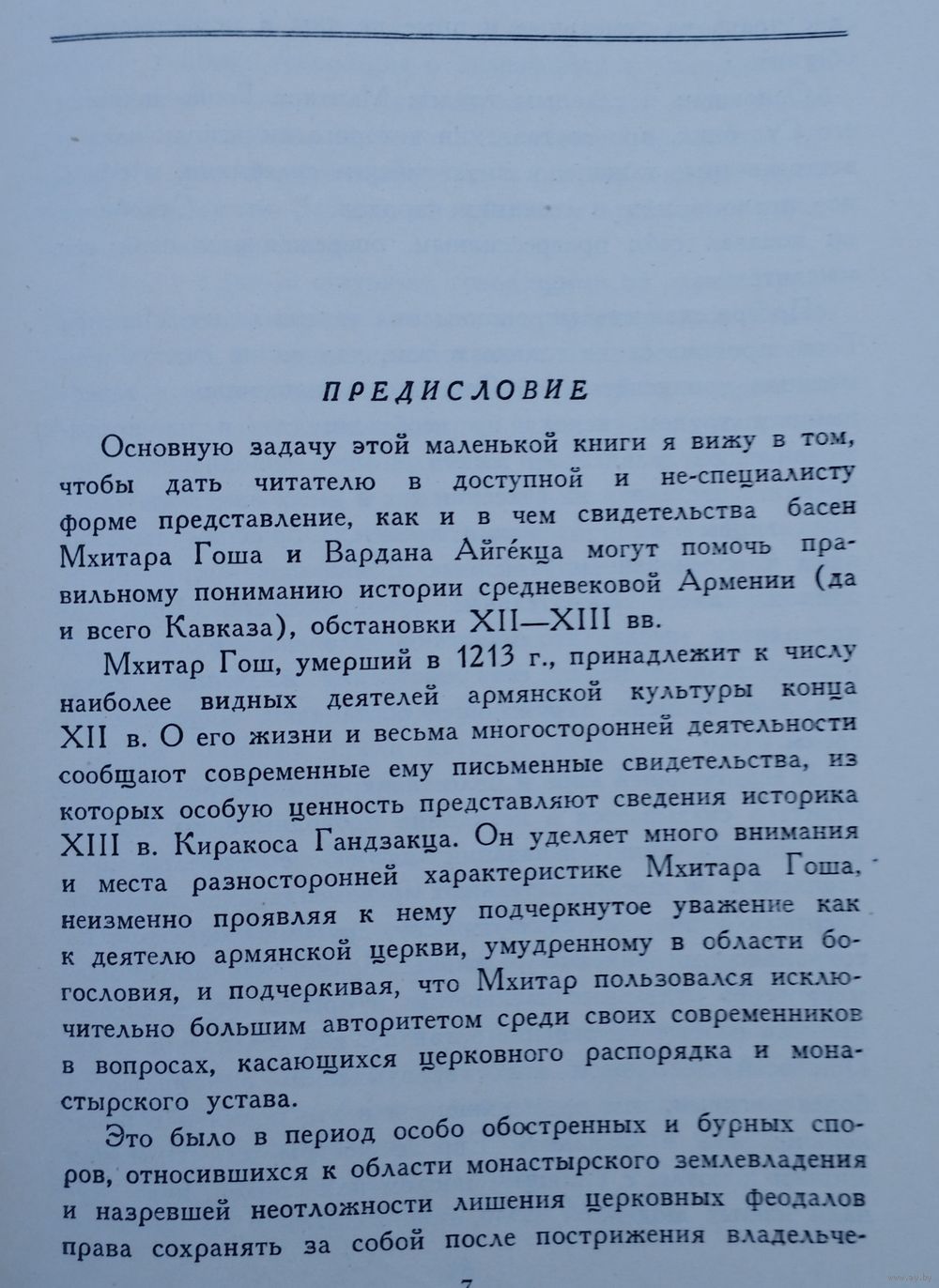 Большой энциклопедический формат. Тираж 30000 экз. 180 стр. Книга содержит основательное введение, 137 басен, а также: "Приложения" с 5-ю баснями и сводными новеллами, "Примечания" с указанием изданий первоисточников, "Указатель соответствий номеров басен по изданиям Мхитара Гоша, Оломпиана, Вардана Айгекца с нуме". Рисунки Моха М. Н. Штамп личной библиотеки.