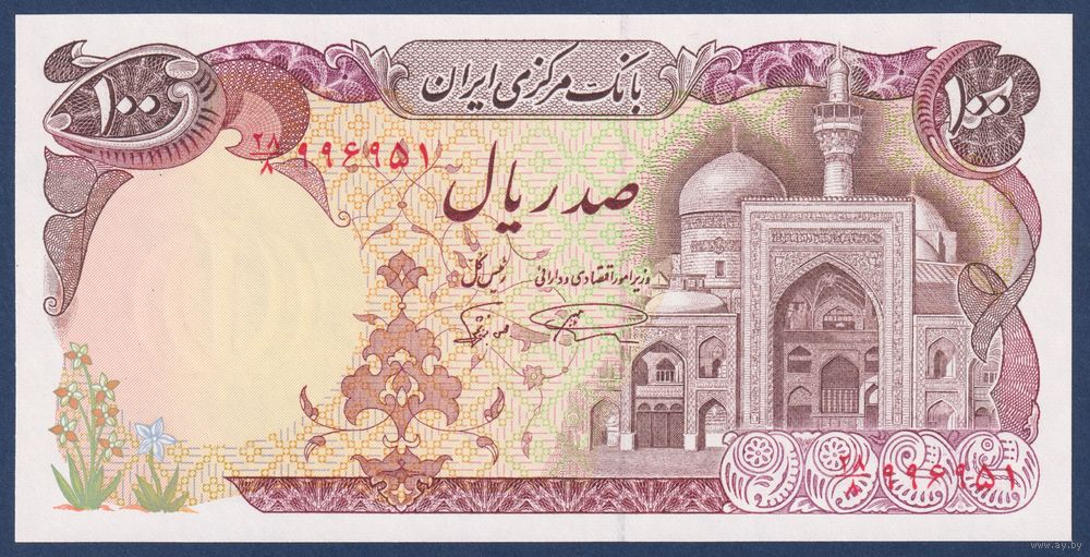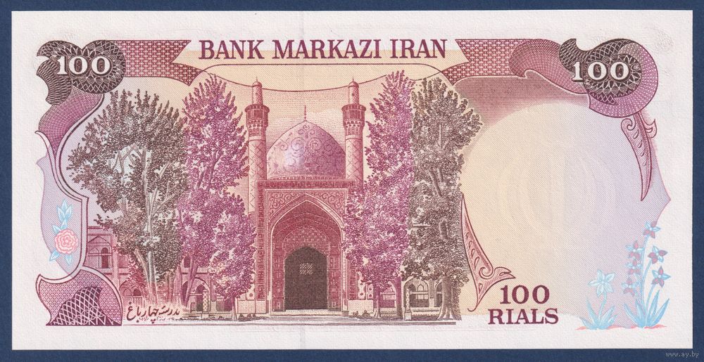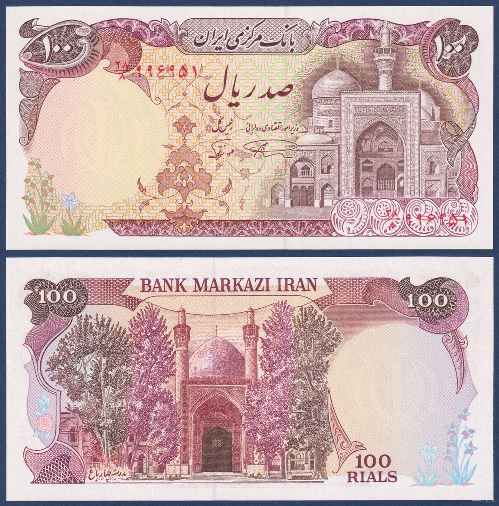 Иран, 100 риалов 1982 г., P-135 (мечеть Имама Резы, школа Четырех садов), UNC