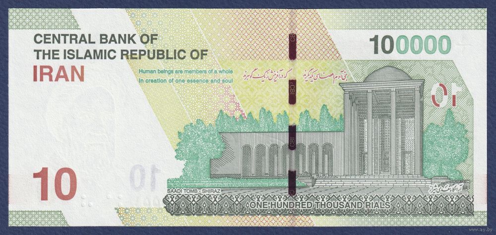 Иран, 100000 риалов (10 туманов) 2021 - 2025 г, P-W163(1) (аятолла Хомейни, гробница Саади в Ширазе), UNC