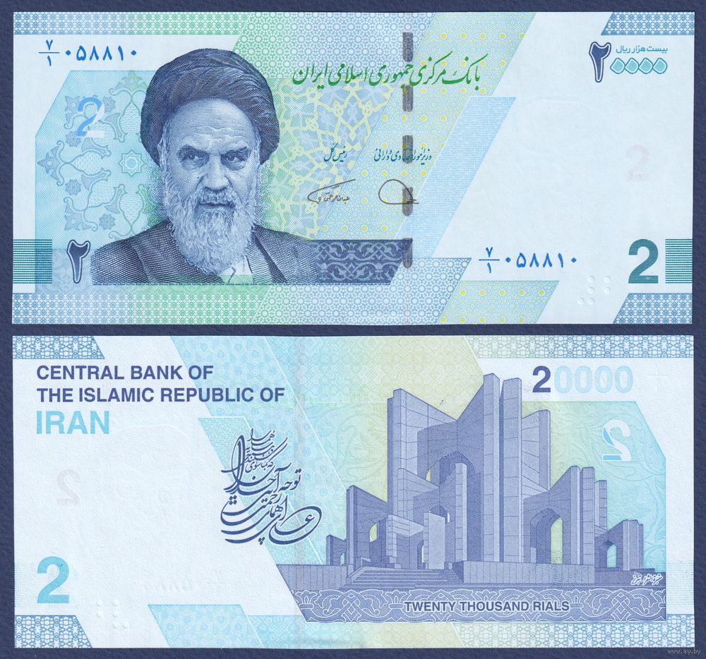 Иран, 20000 риалов (2 тумана) 2022 г, P-W161 (аятолла Хомейни, мавзолей поэтов в Тебризе), UNC