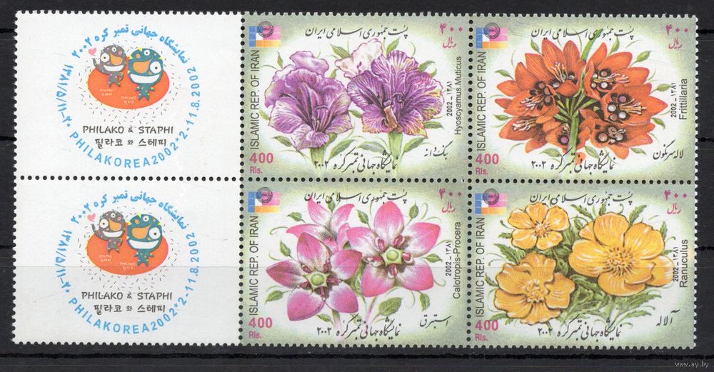 Иран 2002. Цветы. Международная филателистическая выставка в Корее 4марки +купоны (2895)