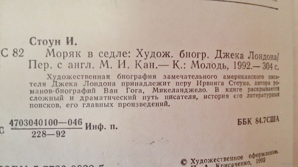 Ирвинг Стоун –Моряк в седле, Киев, издательство «Молодь», 1992г, 304с, тираж 100.000экз, твердый переплет.