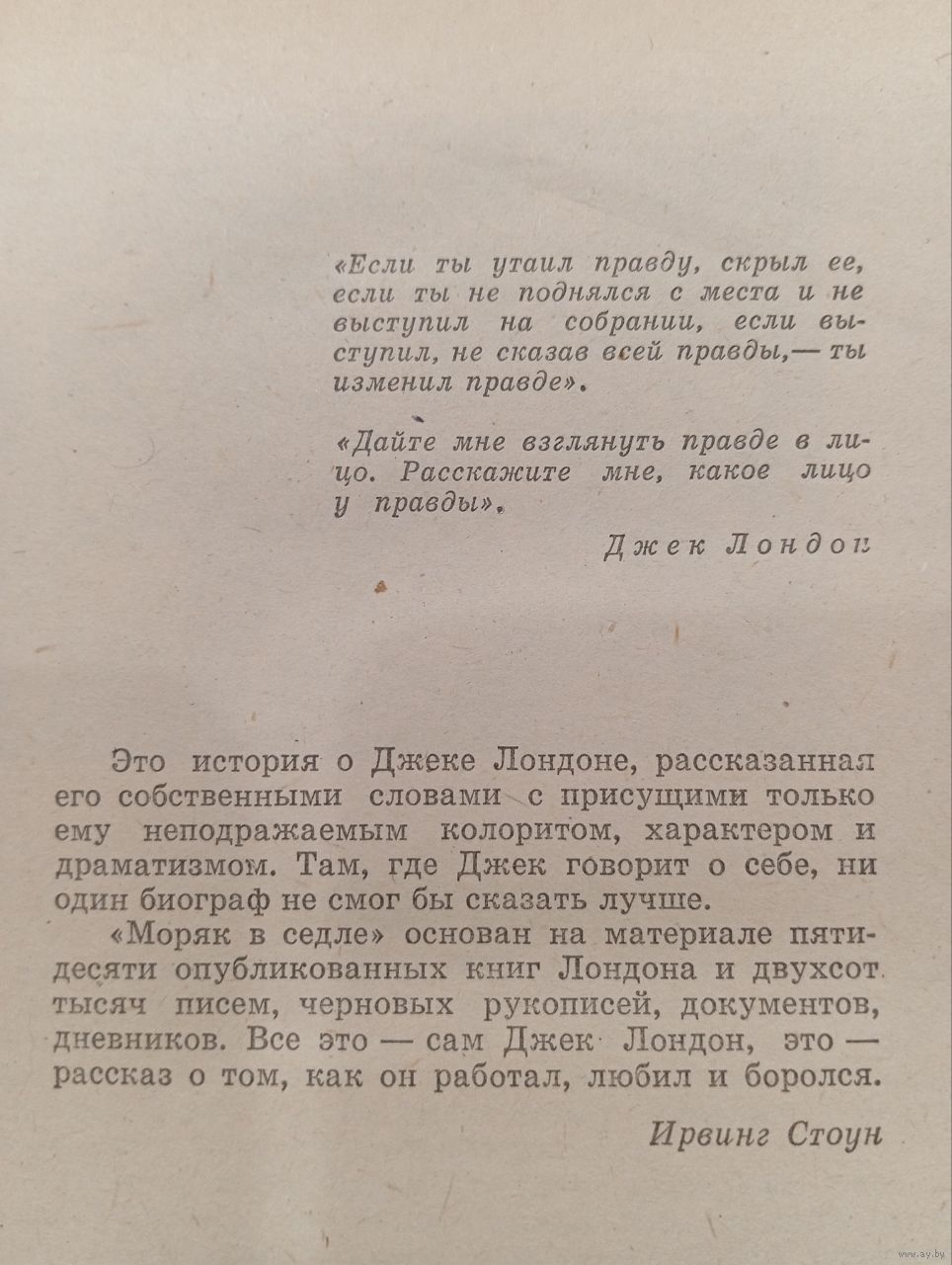 Автор показывает путь Лондона от бедного мальчишки и матроса до знаменитого писателя, чья жизнь оказалась не менее приключенческой, чем его романы.