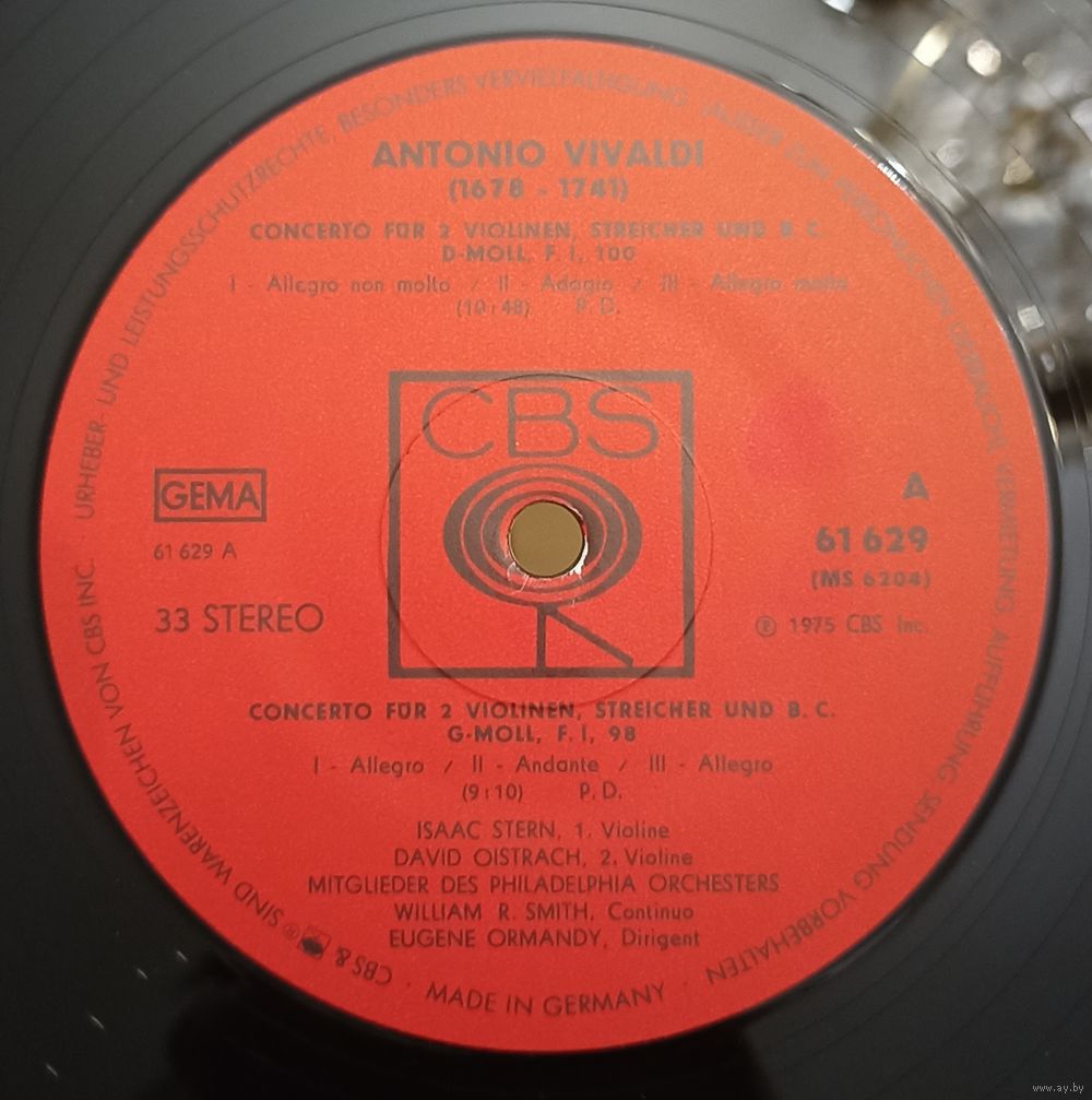 | Исполнитель | Isaac Stern / David Oistrach / Eugene Ormandy Conducts Members Of The Philadelphia Orchestra |