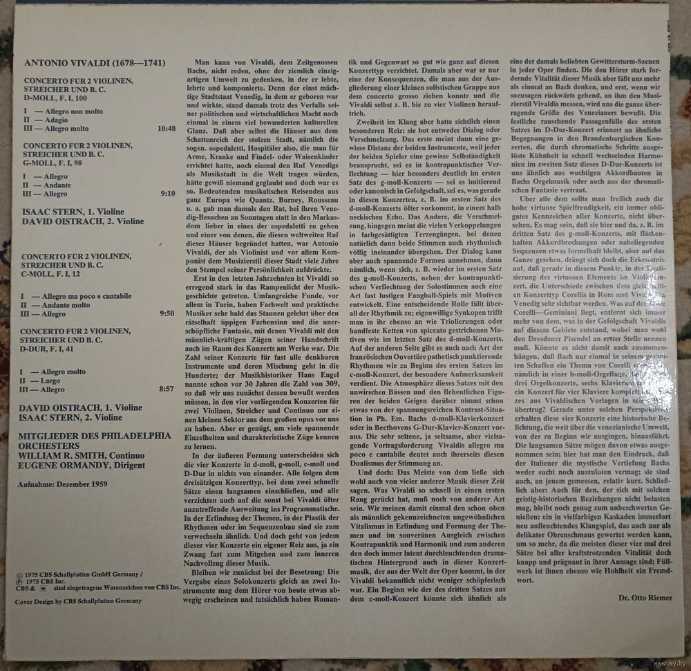 Isaac Stern / David Oistrach / Eugene Ormandy Conducts Members Of The Philadelphia Orchestra / Vivaldi – Konzerte Fur 2 Violinen, Streicher Und B. C.