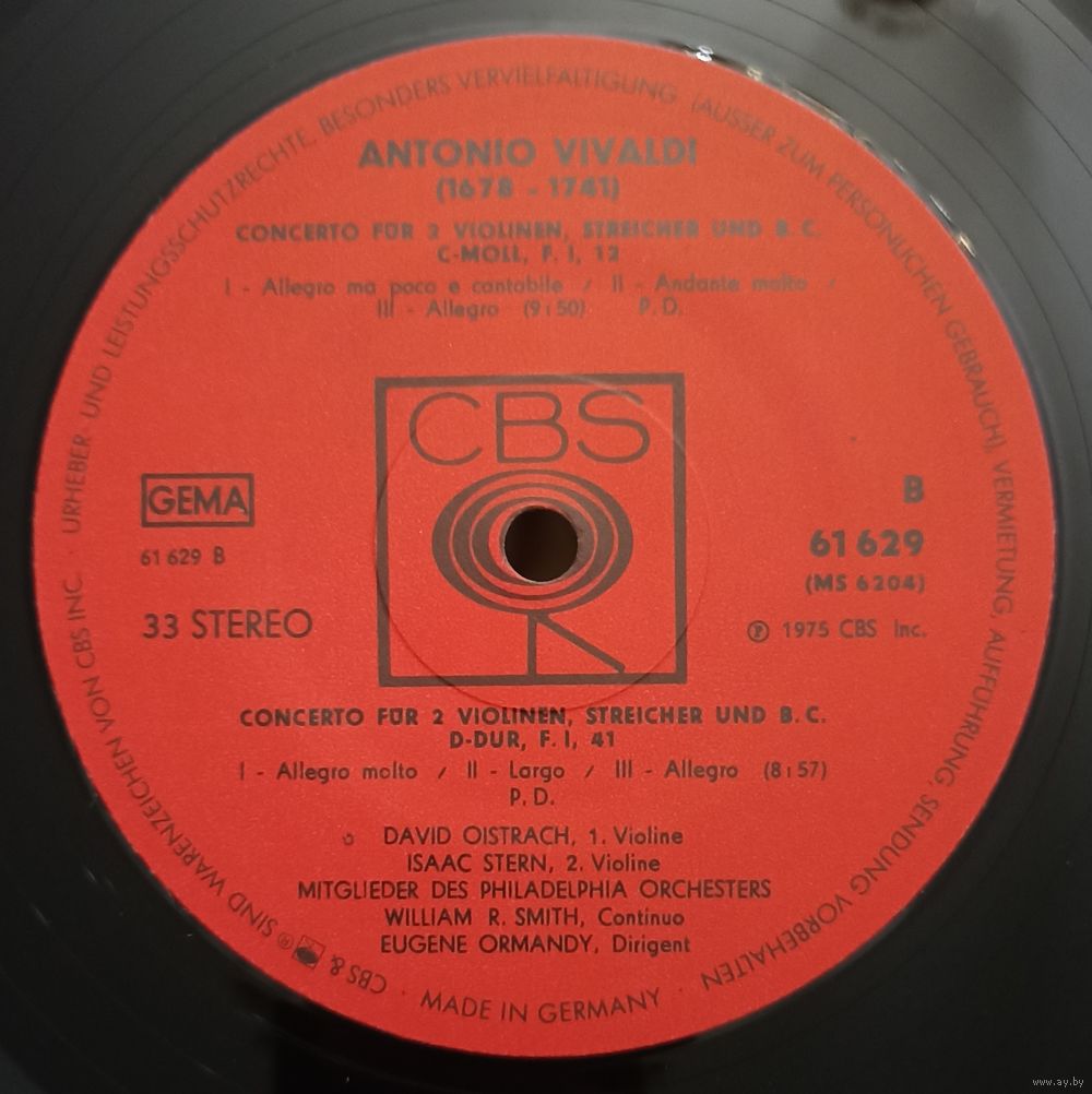 | Исполнитель | Isaac Stern / David Oistrach / Eugene Ormandy Conducts Members Of The Philadelphia Orchestra |