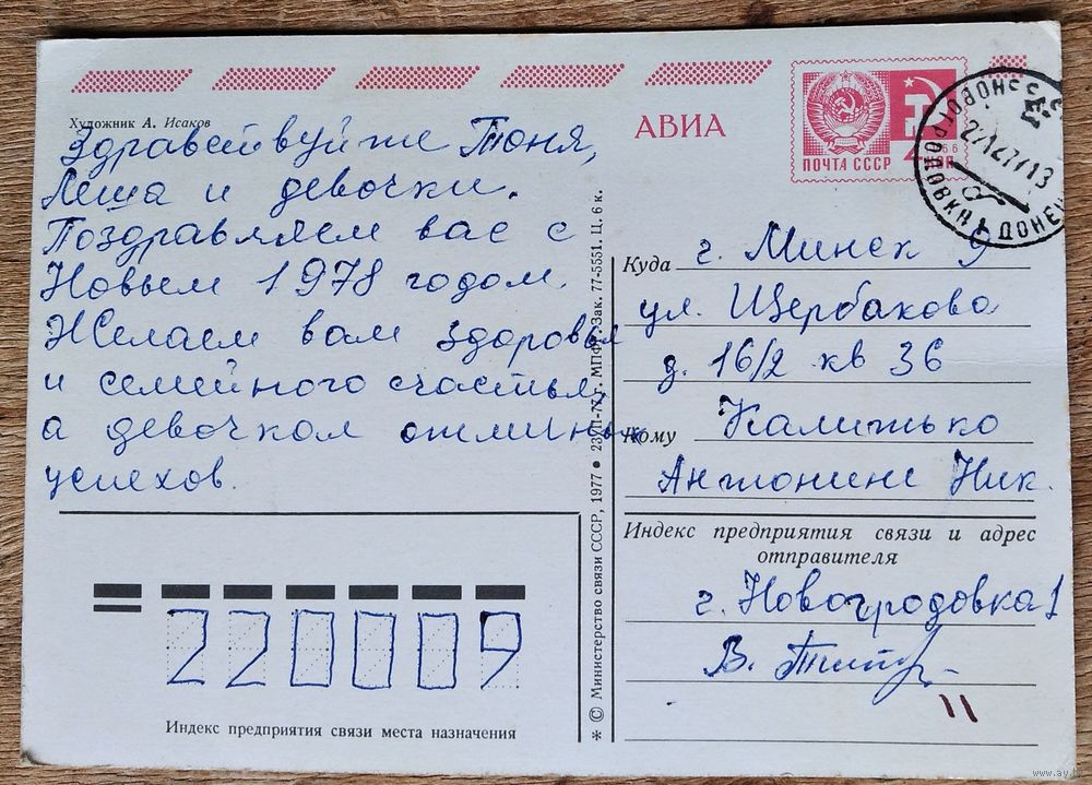 Исаков А. С Новым годом! 1977 г. ПК. Прошла почту.
