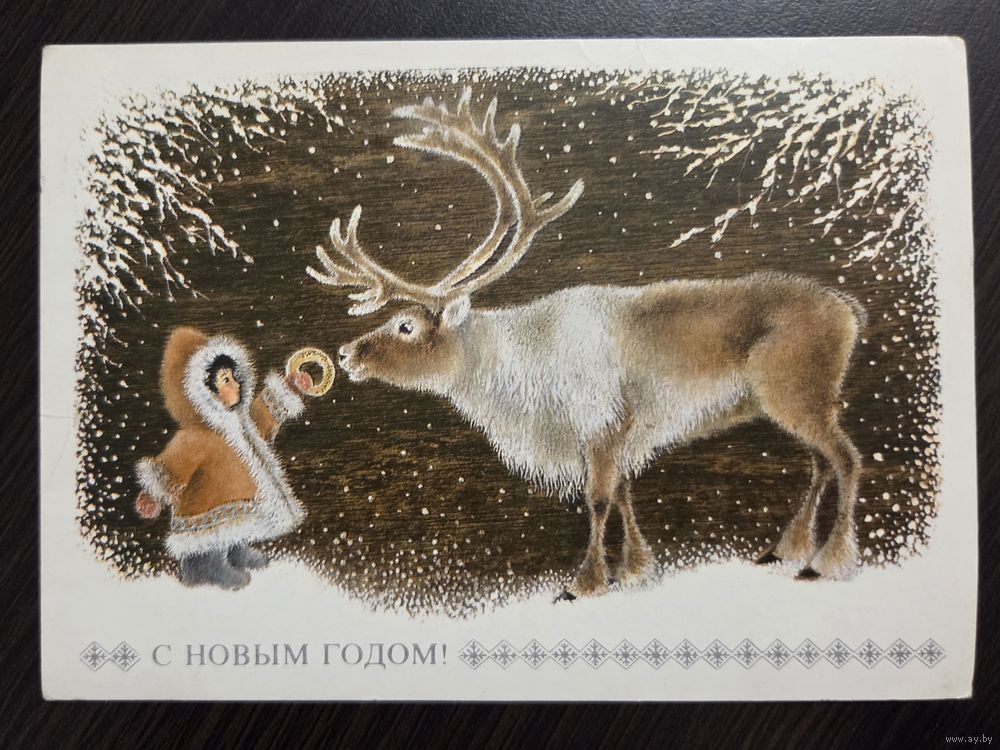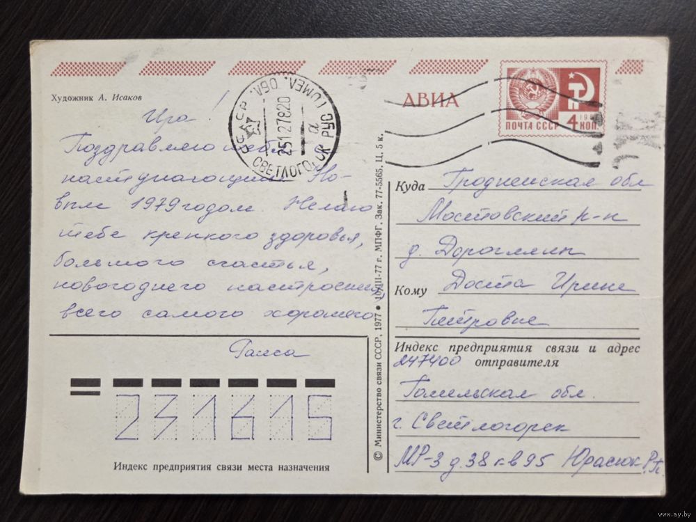 Исаков С Новым годом 1977 подписанная открытка СССР