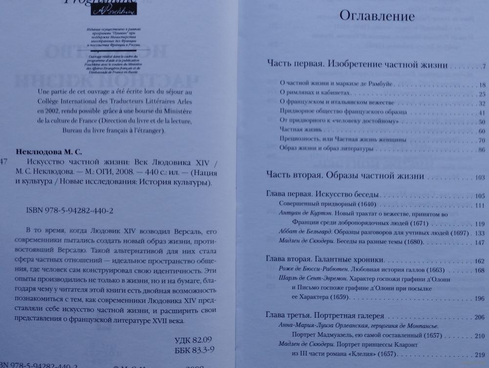 Большой формат. Тираж 3000 экз. 440 стр. В то время, когда Людовик XIV возводил Версаль, его современники пытались создать новый образ жизни, противостоявший Версалю. Такой альтернативой для них стала сфера частных отношений - идеальное пространство общения, где человек сам конструировал свою идентичность. Эти опыты производились не только в жизни, но и на бумаге, благодаря чему у читателя этой книги есть двойная возможность познакомиться с тем, как современники Людовика XIV представляли себе искусство частной жизни, и расширить свои представления о французской литературе XVII века.