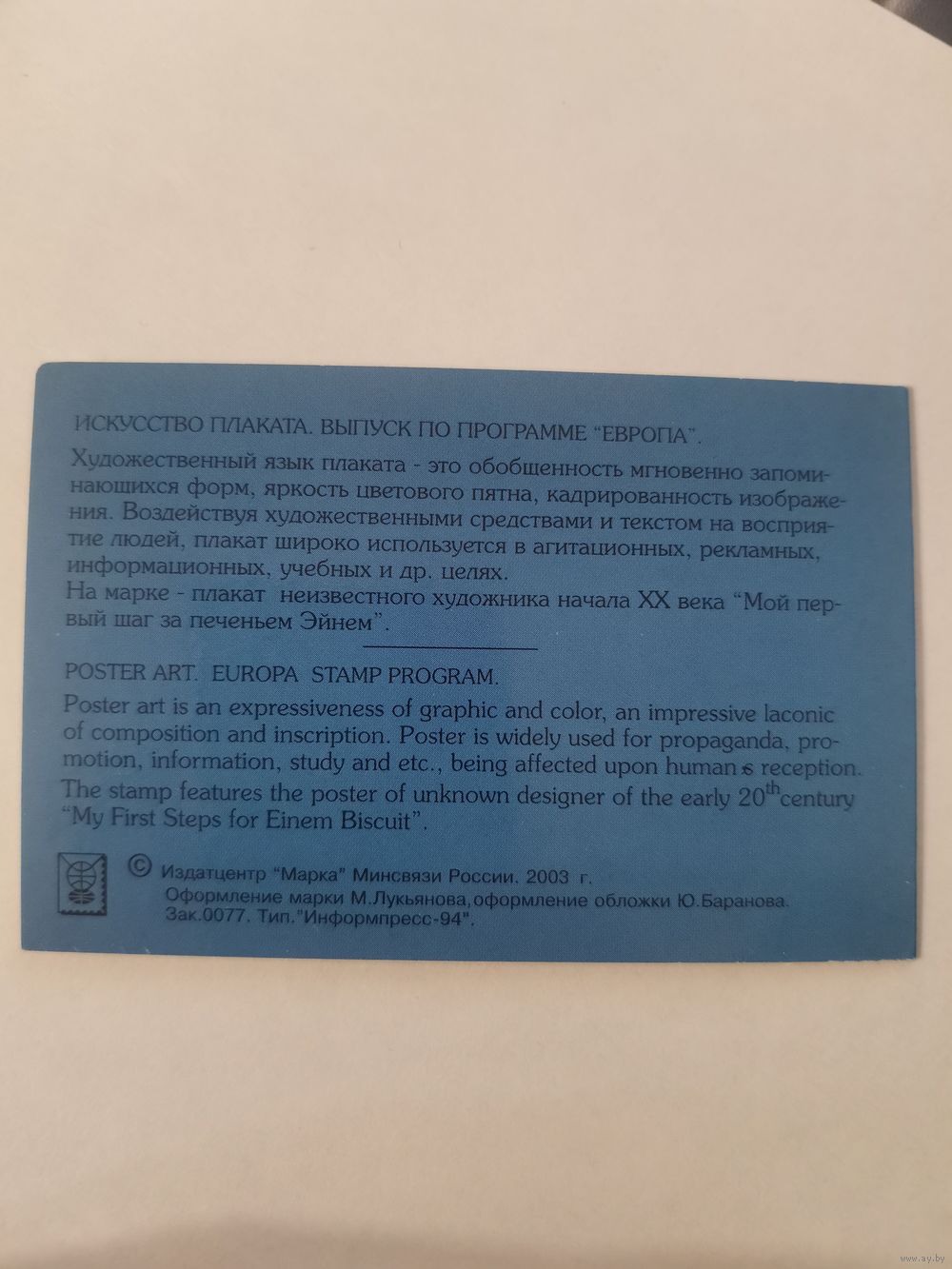 Буклет включает марку и штемпель первого дня гашения
